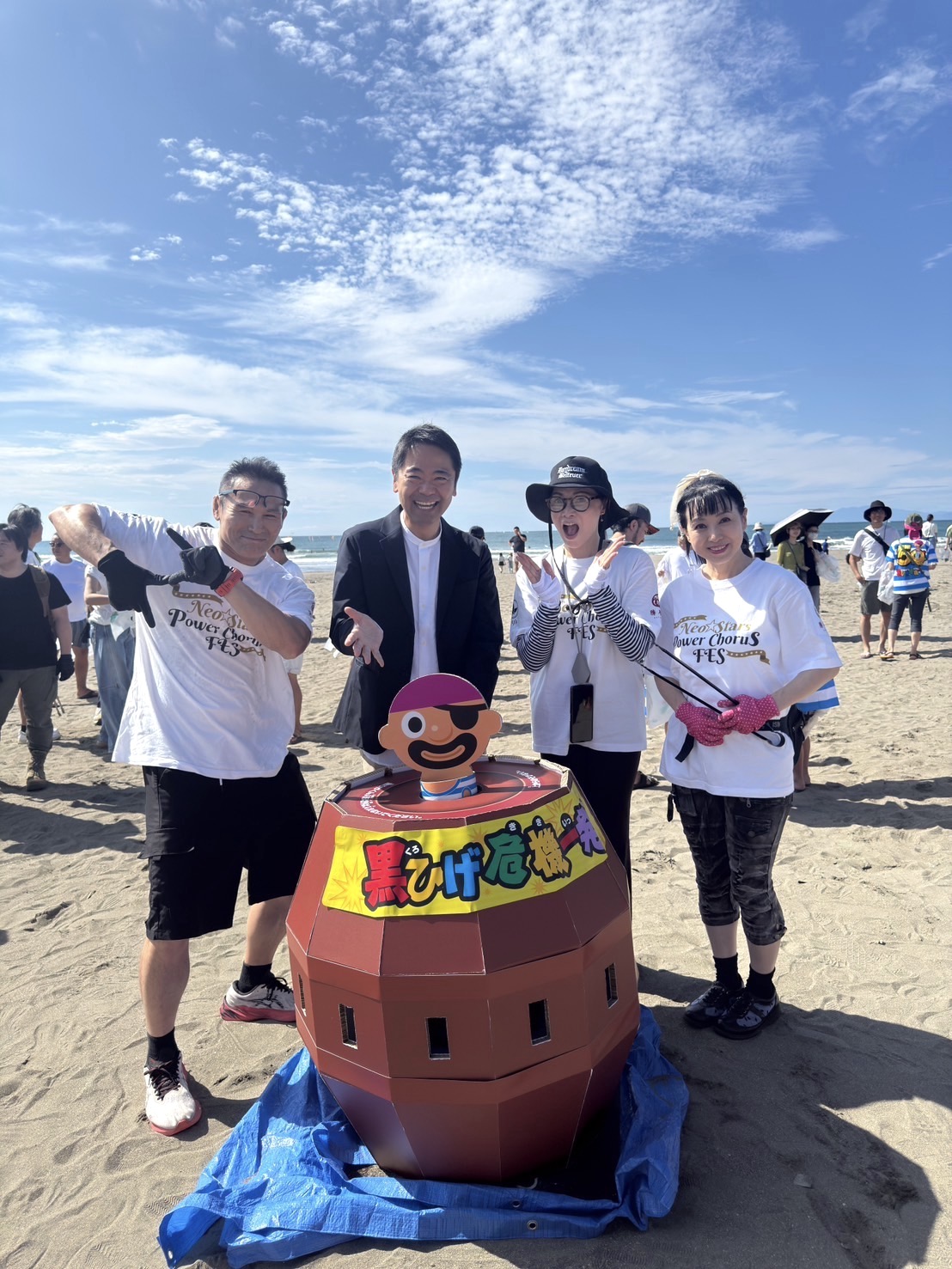 2025.9.21 ビーチクリーン由比ヶ浜 鎌倉市長・松尾たかしさん、渡辺めぐみさん、ミノワマンD.Zさん